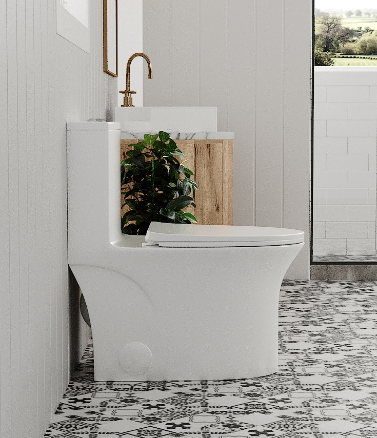 BOTHWA T039-WZ is a one piece toilet with dual flush elongated soft closing PP seat, 18" long bowl with 14.5" water tank.